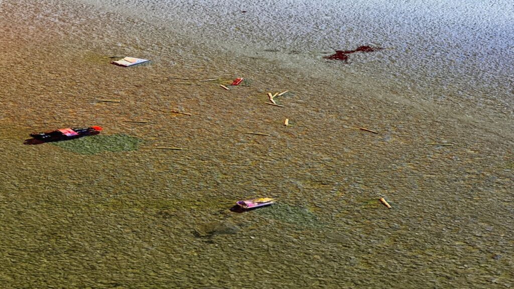 नोएडा सेक्टर 71 हादसे के बाद सड़क पर खून के निशान और बिखरा सामान